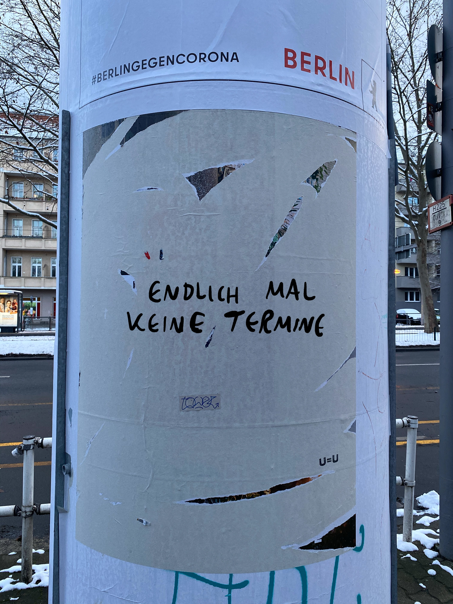 30 meiner Poster konnten die Menschen in Berlin im Stadtraum entdecken, die ich für eine Kooperation von Berliner Senat und weißensee kunsthochschule berlin entwarf. Zur Zeit der Anfrage, im Oktober 2020, ging es noch darum, junge Menschen für die Coronaregeln zu sensibilisieren, sie galten damals als am häufigsten Infizierte. Das hatte sich geändert, 2021 ging es darum, den Lockdown durchzuhalten und ihren Verzicht wertzuschätzen.